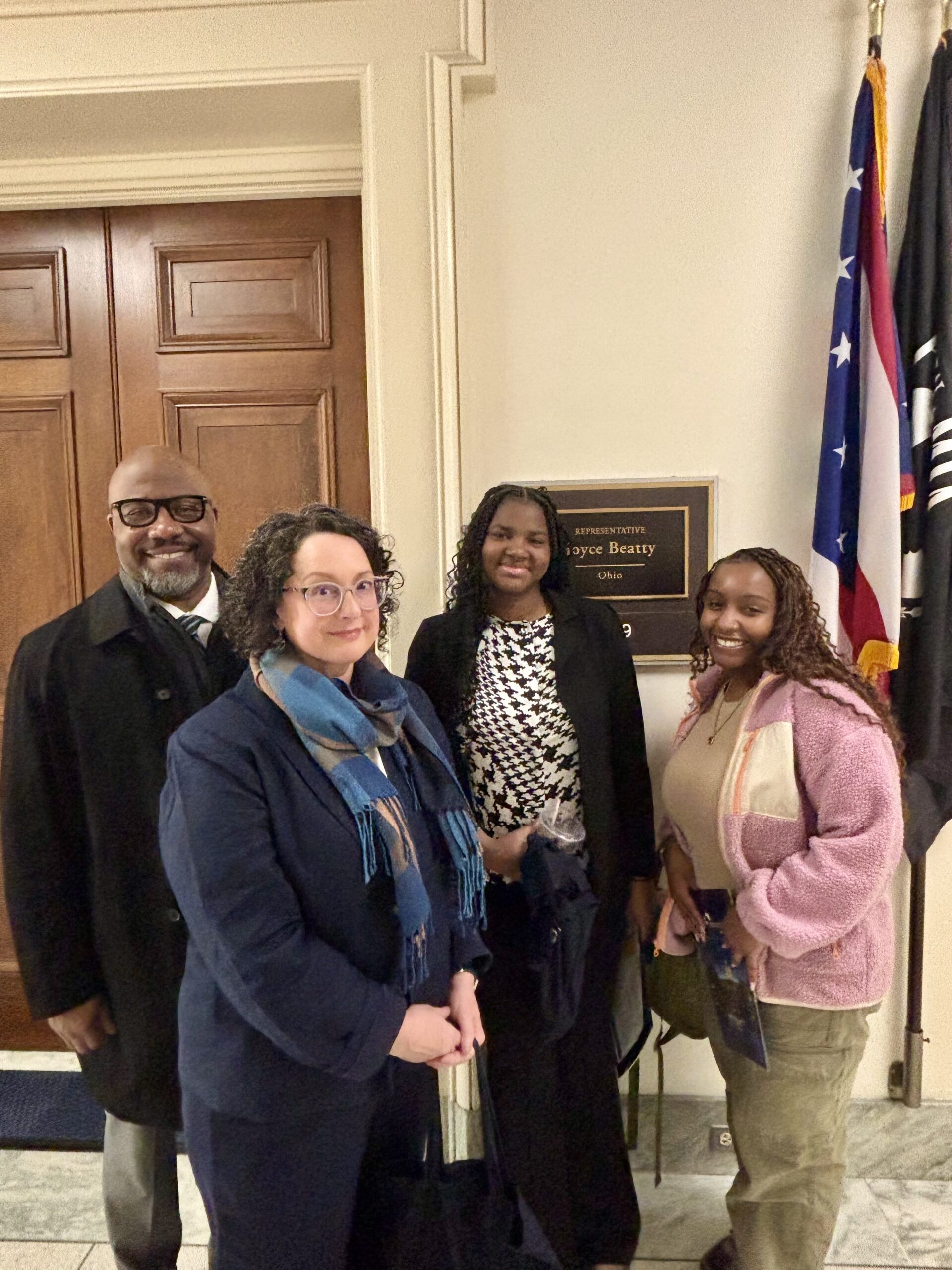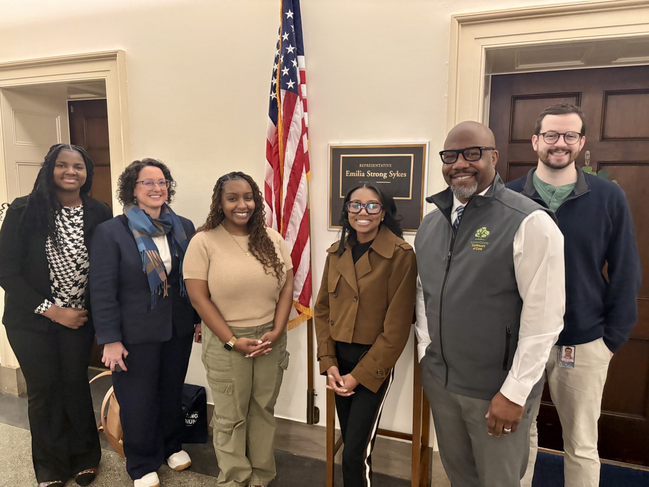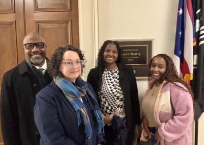 On March 13, representatives participated in Hill Day and the National Low Income Housing Forum in Washington, D.C. Pictured: Christopher Richardson, Executive Director of the Summit County Continuum of Care; Tyra Decatur, Youth Peer Navigator; and Brielle Davis, Chair of the Youth Advisory Board. Also representing the delegation were Gina Wilt and Elizabeth Martindale of COHHIO.