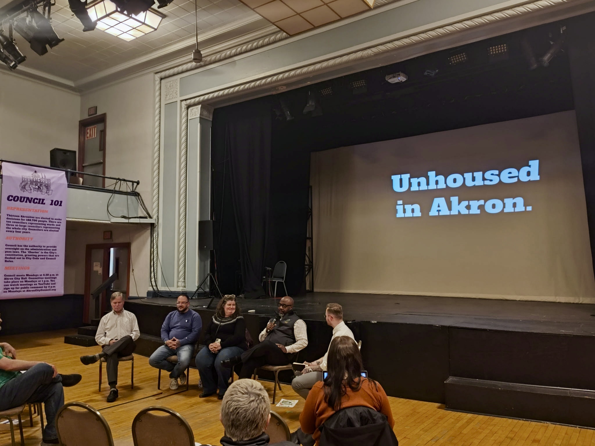 As part of a broader dialogue on addressing homelessness in Summit County, Christopher Richardson, Executive Director of the Summit County Continuum of Care joined community partners at a Ward 1 meeting. Pictured are Lerryn Campbell (Executive Director, Homeless Charity), David Cherbok (Peter Maurin Center), and Matthew Seifert (CSS).